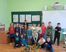 Dne 24. října 2025 proběhla akce ke Dni stromů, kterou připravili žáci 3. ročníku. Uvítali své kamarády písničkou Stromy. Na šesti stanovištích si děti mohly vyzkoušet své znalosti o stromech. Přitom si také trochu protáhnout tělo (běh se šiškou, hod kaštanem na cíl a další). Různé části stromů žáci pozorovali mikroskopem. Děti se seznámily s významnými stromy v okolí (Lukasova lípa, Pajkrův dub, Hápův javor). Nejen to, měly možnost si obkreslit listy z těchto stromů. Na závěr jsme měli společně zasadit strom, ale vzhledem k počasí a k nedostatku času, jsme se domluvili, že borovici lesní zasadíme příští týden.